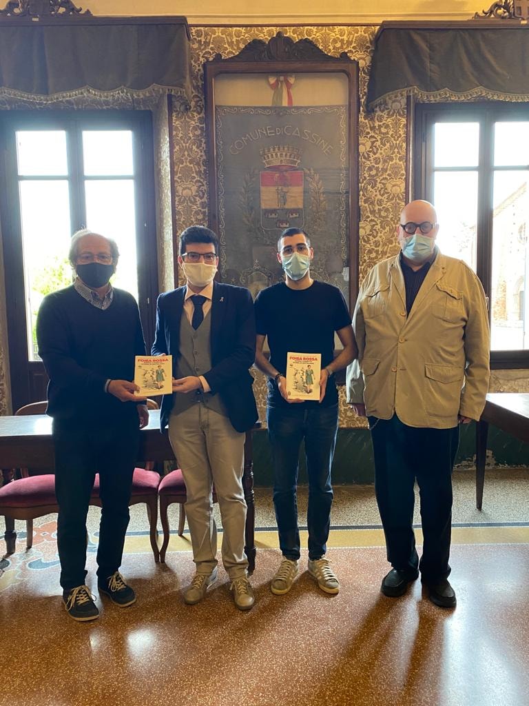L’iniziativa della consegna del fumetto a biblioteche comunali e Istituti Scolastici superiori era partita il 27 febbraio, con la donazione del fumetto Foiba Rossa al Comune di Bistagno. Si era poi dovuta arrestare per l’entrata della Regione Piemonte in zona arancione e poi rossa, potendo riprendere solo l’8 maggio con la consegna di due copie del fumetto per la biblioteca di Cassine alla presenza di una numerosa delegazione di componenti della Giunta e del Consiglio Comunale.