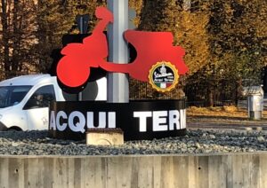 Paghi del risultato ottenuto abbiamo pensato di richiedere all’Amministrazione comunale una rotatoria che ci rappresentasse, un punto di identificazione sul territorio per gli appassionati acquesi della mitica “Vespa”.