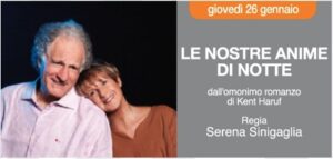 Spettacolo tratto dal romanzo omonimo di Kent Haruf, con adattamento di Emanuele Aldrovandi e regia di Serena Sinigaglia. In scena ci sono Lella Costa ed Elia Schilton, per raccontare la storia di Addie e Louis, una coppia avanti negli anni che decide di vivere una storia d’amore. Si incontrano, notte dopo notte, in casa di lei e parlano… parlano… parlano. Le loro parole diventano confessioni, le loro confessioni sono conforto e assoluzione. Il loro amore è una nuova speranza di vita. Perché si può rinascere a qualsiasi età, perché il bisogno di ascolto e vicinanza è salvezza per l’uomo.