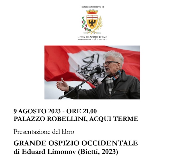 Presentazione del libro: “GRANDE OSPIZIO OCCIDENTALE” di Eduard Limonov Mecoledì 9 Agosto 2023 – ore 21:00