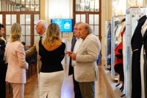 Eleganza interpretata anche in jeans che sanciscono l’evoluzione sociale dal 1850, provenienti dal Museo M.O.D.E. Museum of Denim Elleti Group di Luigi Lovato, la cui presenza è l’omaggio ai 150 anni del tessuto nato a Genova. Stile che viene esaltato negli accessori, nella pelletteria dai tessuti “vegani” al “cuoio” ecosostenibile, e in abiti così scintillanti da sembrare stelle, in creazioni pensate per il mercato internazionale, ideati dal Fashion designer arch. Francesco Scianni, in lane che diventano costumi, come fiori che si trasformano in tessuti, negli accessori che accentuano lo stile e l’eleganza, in sedie intarsiate, le Adriano Podestà, dipinte, scolpite nell’oro che superano cent’anni di tradizione da Chiavari al mondo, in ardesia che si fa mobile, con Matteucci , Map Slate, simbolo di eleganza. La storia della calzatura italiana viene raccontata dalla presenza dei modelli provenienti dal Museo della calzatura di Vigevano, guardando al futuro con i modelli ACBC, azienda leader che utilizza materiali circolari biologici riciclati e/o rinnovabili che sono cresciuti e coltivati.