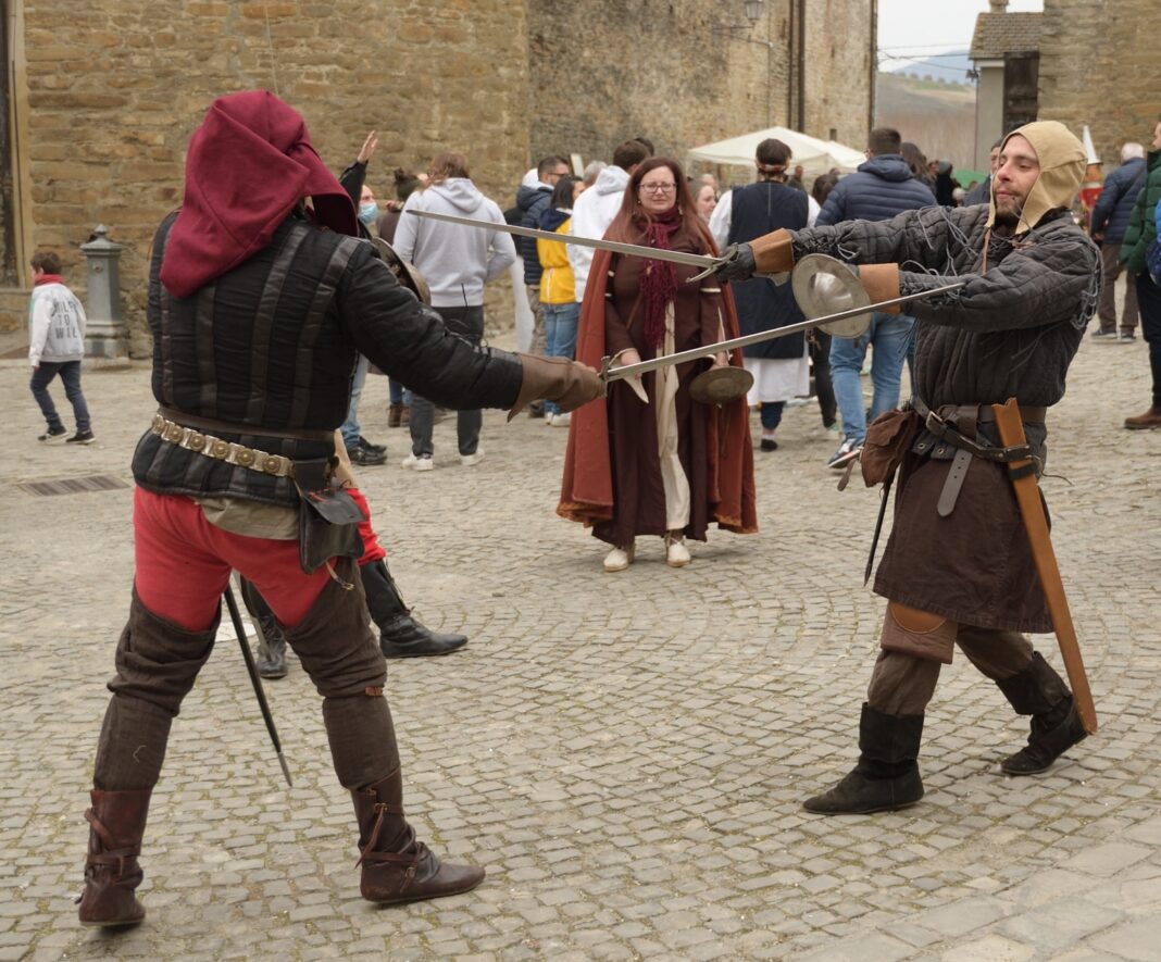 Musici e giocolieri nel borgo. Torneo di Spada. Tiro con la balestra.