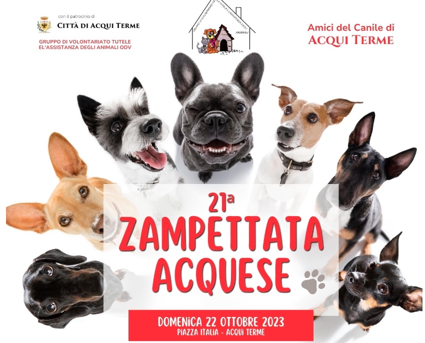 I volontari del canile con il patrocinio del Comune di Acqui Terme e con la collaborazione di molti generosi amici organizzano la 21a ZAMPETTATA ACQUESE per sensibilizzare i cittadini sui problemi dell’abbandono. Iscrizione rassegna cinofila ad offerta. I proventi saranno utilizzati per l’assistenza dei cani abbandonati ospiti del canile