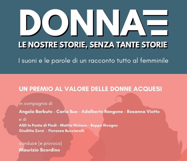 Una serata con i suoni e le parole di un racconto tutto al femminile, per conoscere ed emozionare. L’iniziativa è organizzata dal Comune di Acqui Terme – Consulta dellePari Opportunità, ad ingresso libero (posti limitati: è consigliata la prenotazione tel. 0144322142  oppure al link https://forms.gle/m84rnXb3YUDzwzLB6).