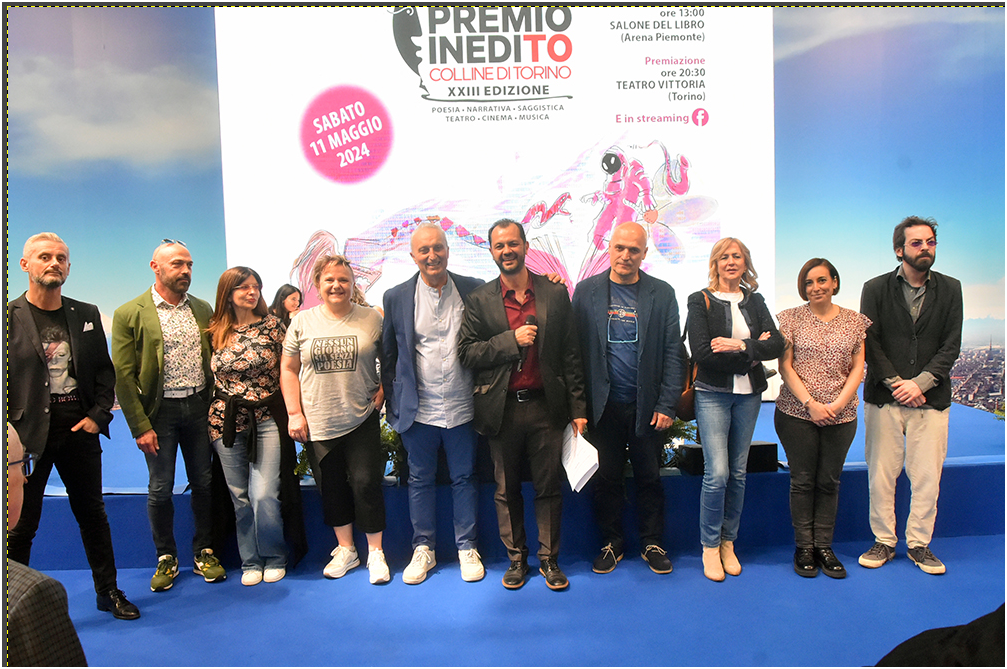 È stata una giornata incredibile, memorabile, traboccante di valori, significati, emozioni, quella al Salone del Libro di Torino di sabato 11 maggio, a conclusione della XXIII edizione del Premio InediTO – Colline di Torino organizzato dall’Associazione Il Camaleonte di Chieri (TO). Il pubblico attento, caloroso e assiepato, ha partecipato alla proclamazione dei vincitori all’Arena Piemonte (messa a disposizione dalla Regione Piemonte, principale ente sostenitore) e alla premiazione, inserita nel programma del Salone OFF, che si è svolta nella bellissima location del Teatro Vittoria di Torino e in diretta streaming sulla pagina Facebook del premio, attraverso la consegna dei premi e il reading dedicato alle opere dei vincitori, condotte dal mattatore della giornata, il poeta e performer Valerio Vigliaturo, direttore del concorso.