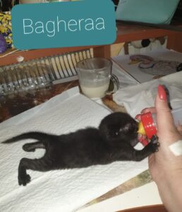 Ecco Bagheraa: un maschietto dei fantastici sei! Grazie alle costanti cure della balia (grazie di cuore per l’incredibile lavoro a Eleonora) sta crescendo e, pian piano, inizia a mangiare anche un po’ di pappa solida. Non appena sarà autosufficiente, saremo felici di affidarlo ad una famiglia che sappia amarlo come merita. Nel caso Voleste prenotarVi, seguite le condizioni di adozione: provincia di Alessandria e zone limitrofe, preferibilmente appartamento o giardino completamente in sicurezza. Per informazioni contattare ENPA Acqui Terme esclusivamente al numero 3489114225.