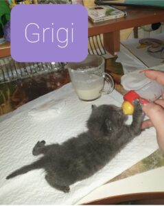Ecco Grigi, l’unica femminuccia dei fantastici sei! Non appena sarà autosufficiente, saremo felici di affidarla ad una famiglia che sappia amarla come merita.