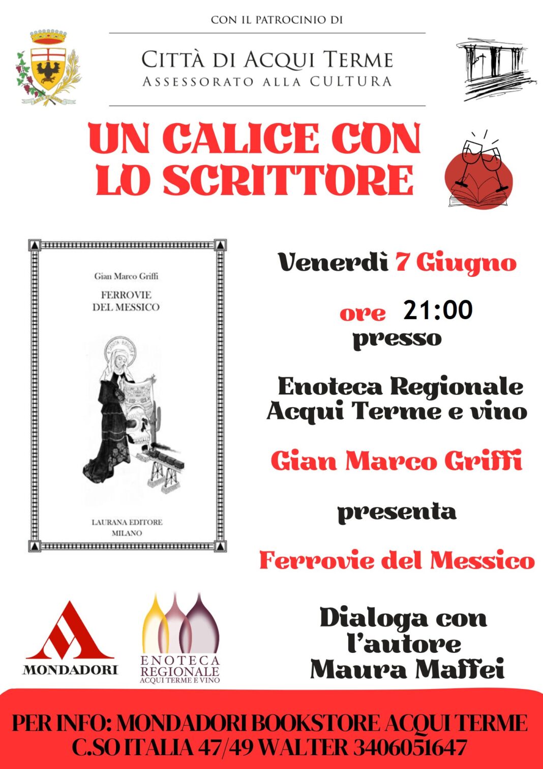 Venerdì 7 giugno alle 21.00 avremo ospite in Enoteca Regionale Acqui e Vino Gian Marco Griffi, finalista al Premio Strega 2023 con il libro “Ferrovie del Messico”.