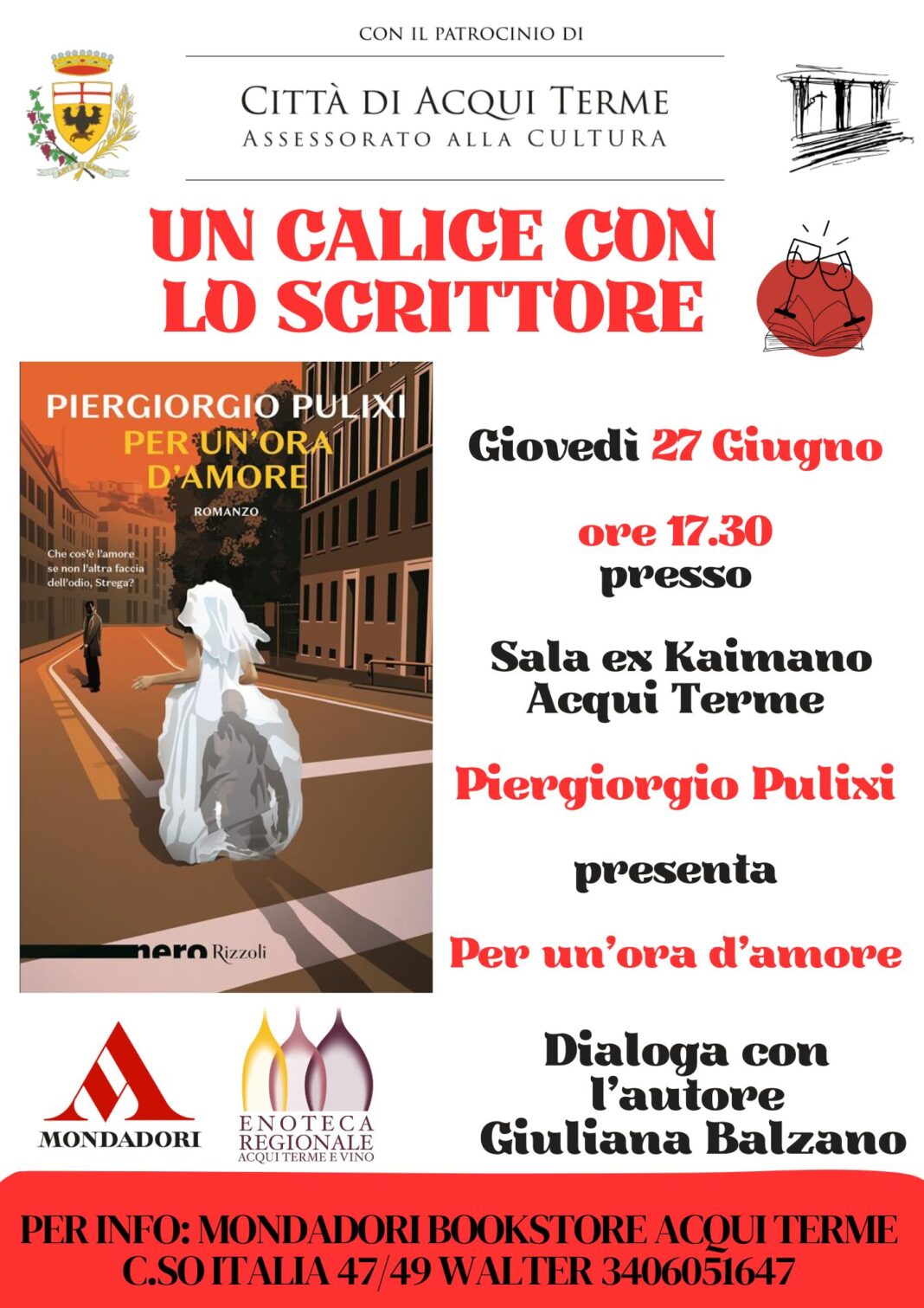 La rassegna “Un calice con lo scrittore” si sposta straordinariamente presso la Sala Ex Kaimano dove giovedì 27 Giugno alle ore 17.30 la scrittrice Giuliana Balzano dialogherà con l’autore presentando il libro “Per un’ora d’amore”, Rizzoli Editore.