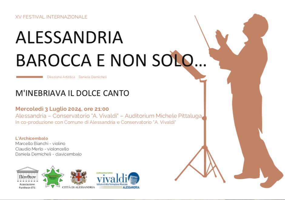 L’Archicembalo, in formazione di trio con il violinista Marcello Bianchi, il violoncellista Claudio Merlo e la clavicembalista Daniela Demicheli, nel concerto dal titolo “M’inebriava il dolce canto”, che si terrà Mercoledì 3 luglio alle 21 presso l’Auditorium Michele Pittaluga del Conservatorio di Alessandria, confronterà la grande produzione strumentale tedesca a cavallo fra Sei e Settecento –