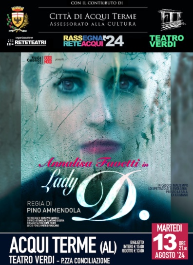 Reduce da numerosi successi nei più importanti teatri italiani, scritto e interpretato dalla talentuosa Annalisa Favetti proveniente dalla Scuola di Gigi Proietti con cui ha lavorato in diverse occasioni, “Lady D” è un intenso monologo che esplora la vita e l’eredità della Principessa Diana, una delle figure più iconiche e amate del XX secolo. Attraverso una performance emozionante e coinvolgente con la partecipazione di performer di danza, che creano effetti di grande suggestione, Annalisa Favetti ci guida in un viaggio tra luci e ombre, riflettendo sui momenti chiave che hanno definito la vita della “principessa del popolo”. Lo spettacolo nell’edizione 2024 è arricchito da un finale inaspettato ed emozionante.