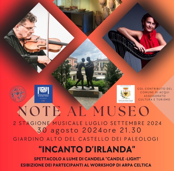 ACQUI TERME – Un nuovo album di melodie irlandesi e un vetrina speciale in chiave di “brunch”. Succede a Acqui Terme al Museo dei Paleologi (in caso di maltempo ex Sala Kaimano), teatro nella serata del 30 agosto alle 21.30 dopo la visita guidata al Museo, della “presentazione” di “Carolans’ Delight volume 2”, il nuovo lavoro dell’arpista Tatiana Donis e del violinista Elio Vigolo.