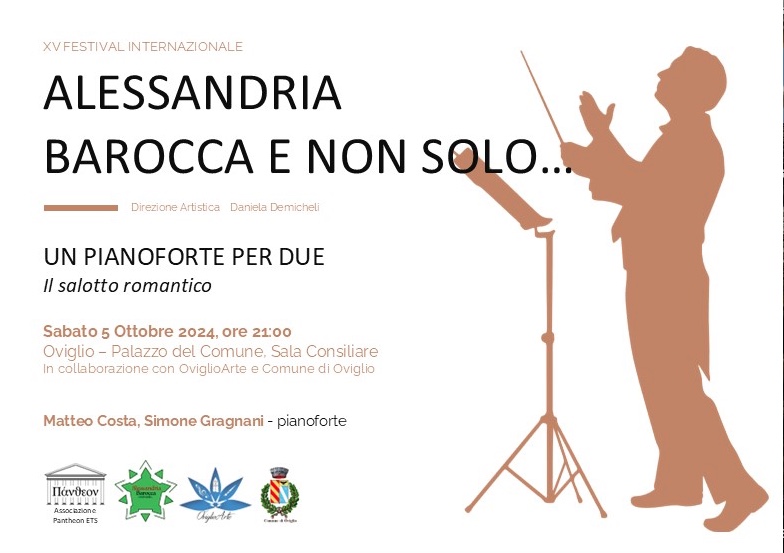 La XV edizione del Festival Internazionale di Musica “Alessandria Barocca e non solo…”, che dal 7 Giugno, sotto la direzione artistica di Daniela Demicheli, ha coinvolto il territorio di Alessandria e provincia in 11 appuntamenti con la Musica Classica dal Barocco ad oggi, declinata in varie formazioni strumentali, si chiuderà Sabato 5 ottobre, alle ore 21, presso il Palazzo Comunale di Oviglio con il concerto dal titolo “Un pianoforte per due – Il salotto romantico”, attesissimo appuntamento con il raffinato e sensazionale pianismo di Matteo Costa e Simone Gragnani, che ricreeranno l’atmosfera di un salotto ottocentesco nella bella Sala Consiliare.