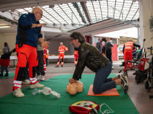 Durante la giornata è stato infatti possibile visitare le sedi delle associazioni e ricevere informazioni sui presidi e sulla strumentazione delle ambulanze e su come diventare volontari soccorritori. Una particolare attività proposta ha riguardato proprio l’esperienza di essere soccorritore per un’ora, diventando parte di un equipaggio di ambulanza in un intervento di soccorso sanitario simulato.