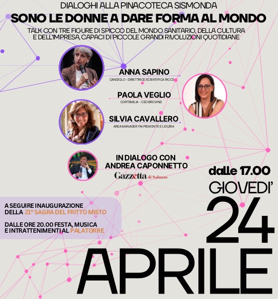 Nello specifico, dalle 17, nella Pinacoteca Sismonda (casa Bonino, piazza Cravero), sono state invitate a dialogare con il giornalista Andrea Caponnetto (Gazzetta di Saluzzo), Anna Sapino (direttrice scientifica dell’Istituto