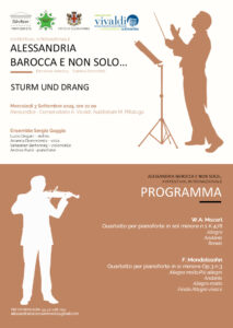 Il primo, Mercoledì 3 Settembre, rappresenta un raffinato omaggio allo spirito irrequieto e visionario dell’Europa preromantica. Alle ore 21, l’Auditorium Michele Pittaluga ospiterà l’Ensemble Sergio Gaggia con il concerto “Sturm und Drang”, realizzato in collaborazione con il Conservatorio Vivaldi e il Comune di Alessandria.