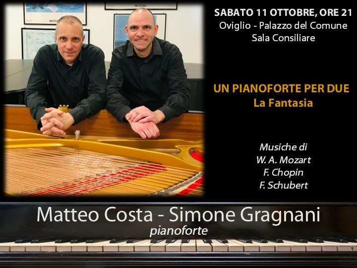 Il concerto, significativamente intitolato “Un pianoforte per due – La Fantasia”, vedrà protagonisti Matteo Costa e Simone Gragnani, due pianisti di consolidata esperienza e fine sensibilità interpretativa, noti per la profondità del loro approccio e la raffinatezza del tocco.