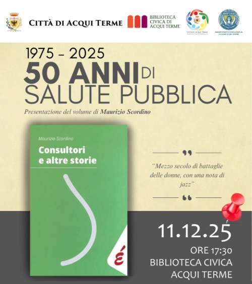 Giovedì 11 dicembre, alle 17:30, la Biblioteca Civica di Acqui Terme accoglierà la presentazione del nuovo libro di Maurizio Scordino, Consultori e altre storie. Sarà un incontro pensato non solo per parlare di un testo, ma per attraversare cinquant’anni di storia sociale, culturale e sanitaria attraverso lo sguardo di chi ha vissuto – e continua a vivere – l’esperienza dei Consultori familiari.