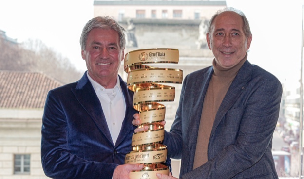 Classe 1957, Visentini conquistò la Maglia Rosa al termine della 16^ tappa di quell’edizione, la Erba-Foppolo, difendendola con successo fino al gran finale di Merano. Oggi, a quarant’anni da quell’impresa, gli è stato conferito il Trofeo Senza Fine, riservato dal 2000 ai vincitori del Giro d’Italia.