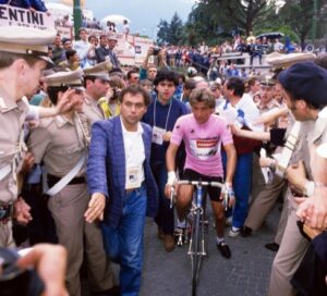 Visentini indossò la Maglia Rosa anche nell’edizione 1987, prima di perdere la testa della classifica nella celebre Lido di Jesolo-Sappada, passata alla storia per il “tradimento di Sappada”, quando fu attaccato direttamente dal suo compagno di squadra Stephen Roche, futuro vincitore del Giro.