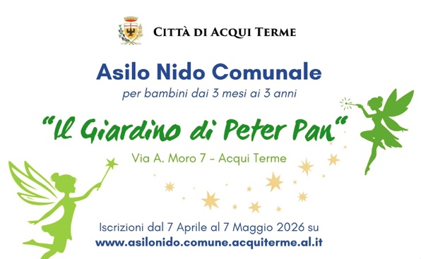 L’Assessorato alla Pubblica Istruzione del Comune di Acqui Terme informa che l’Asilo Nido Comunale “Il Giardino di Peter Pan”, in Via A. Moro 7, aprirà le proprie porte alle famiglie in occasione degli Open Day: